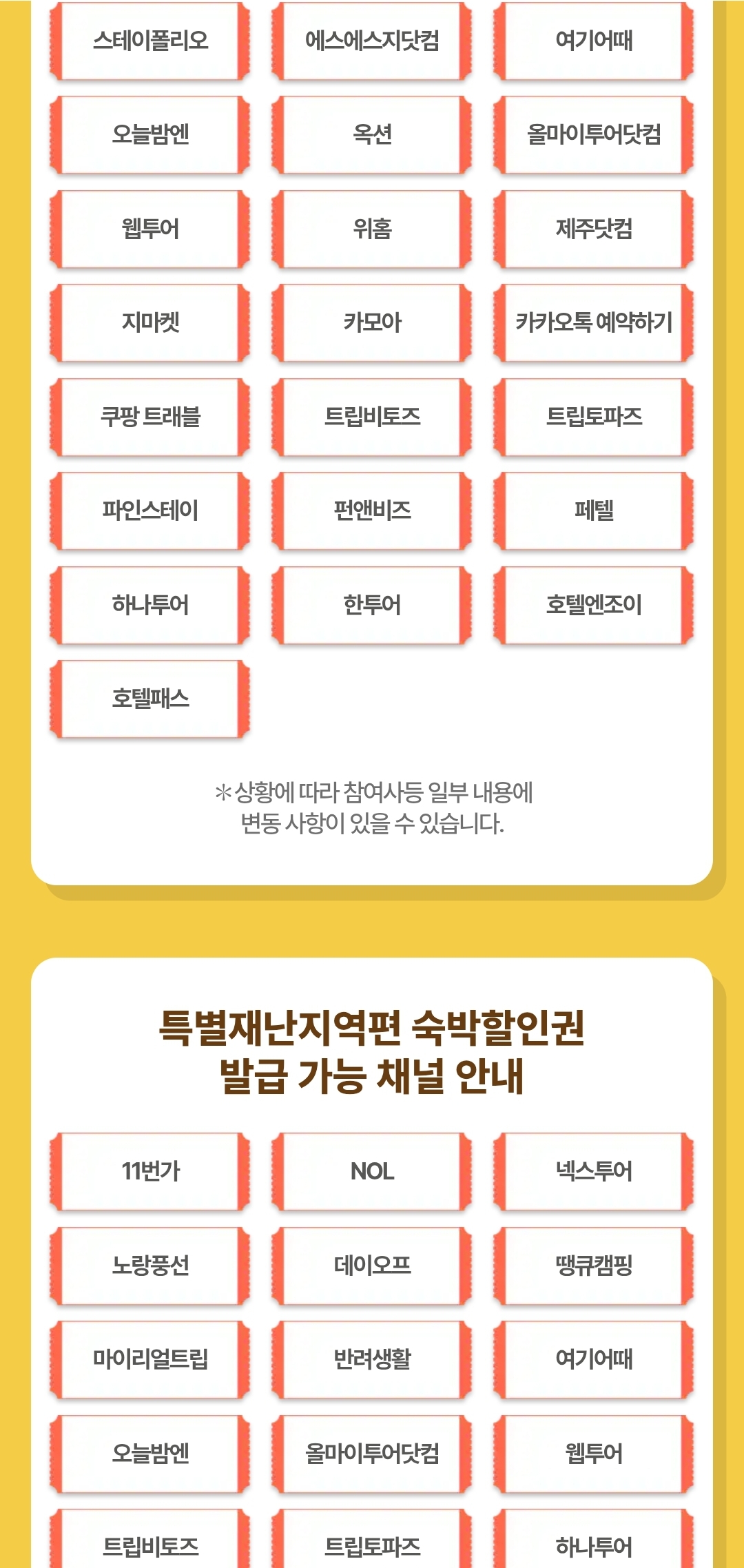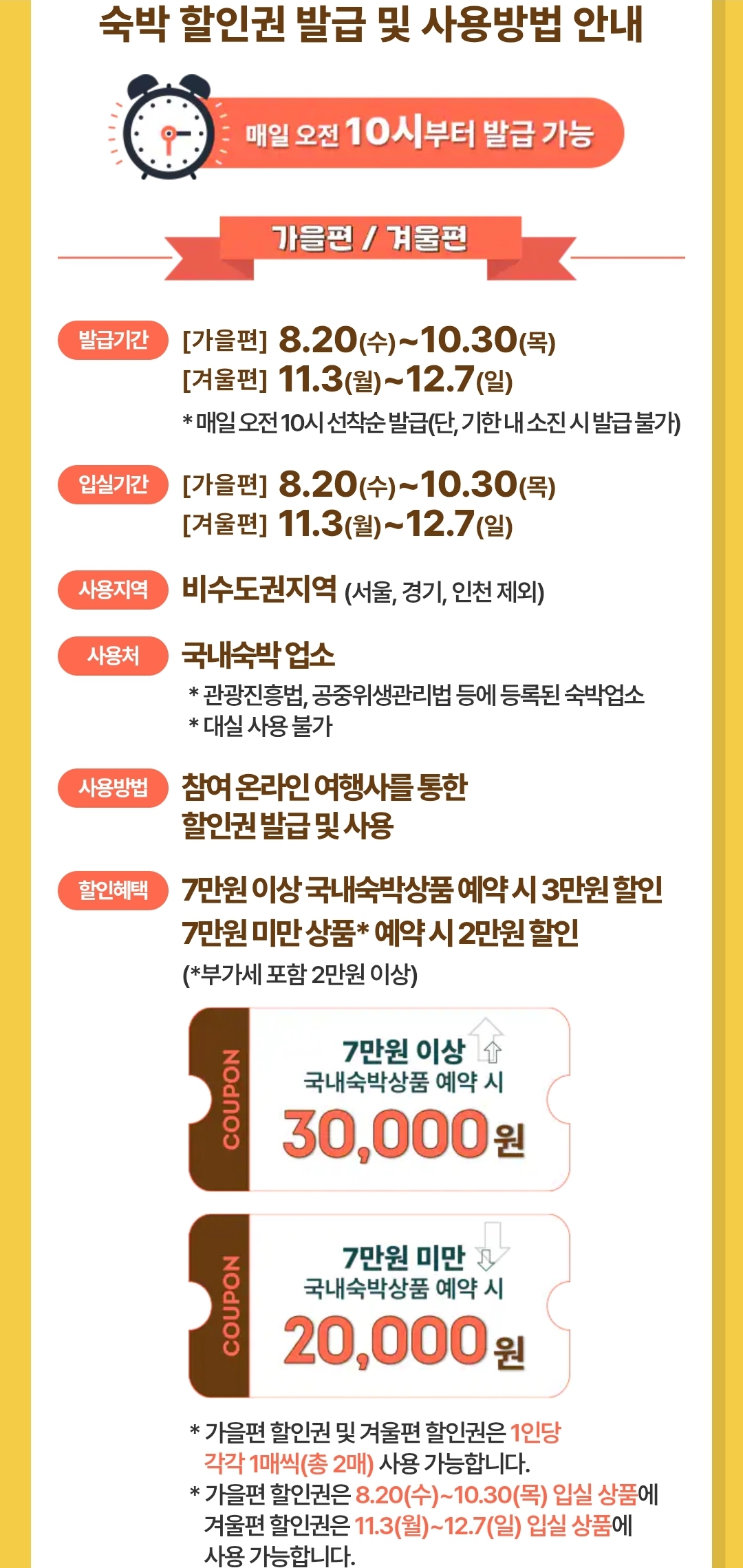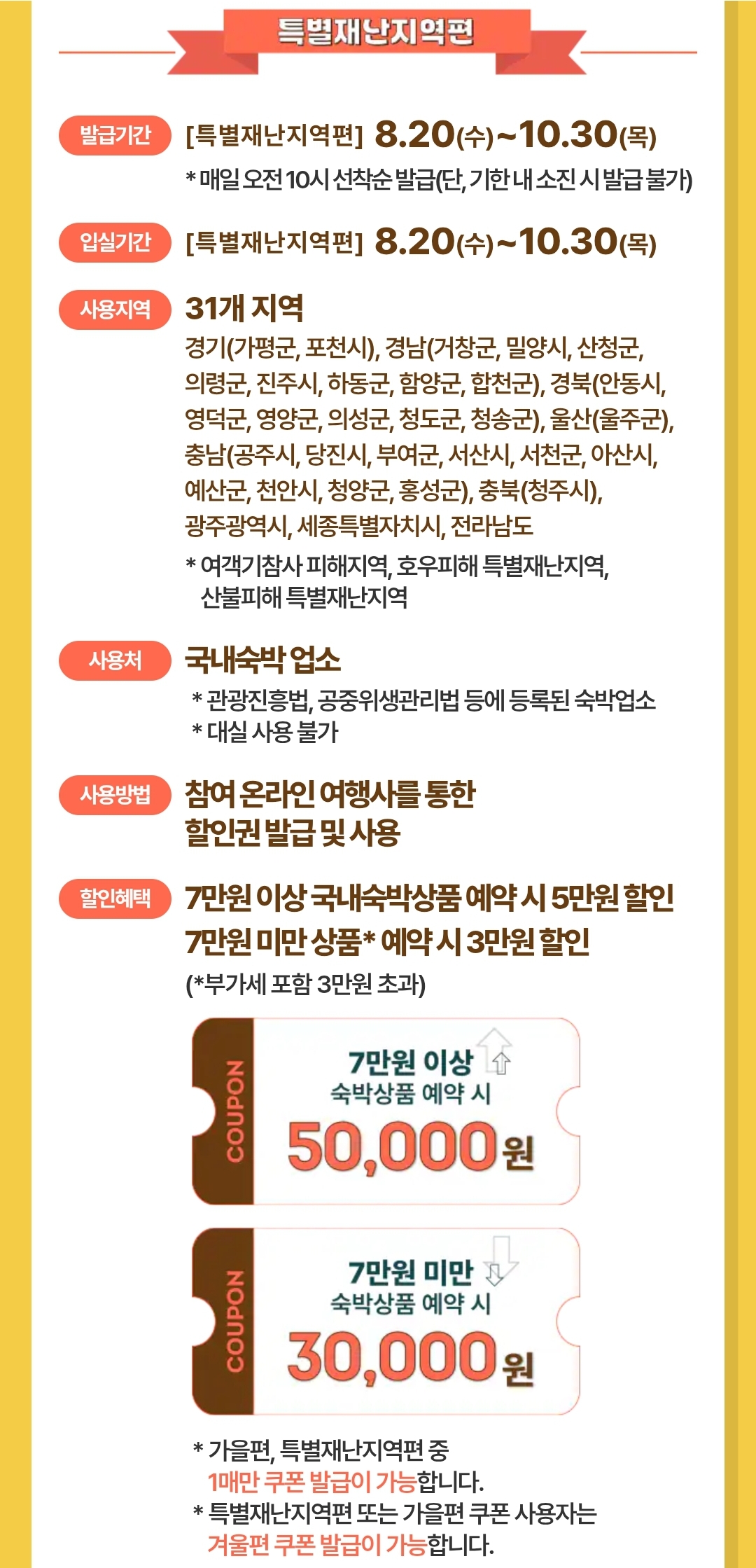 - 특별재난지역편: 가을편 기간과 동일, 재난 피해 지역 대상 특혜 할인권